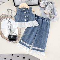 Ensemble deux pièces pour filles, vêtements pour enfants, mode été 2024, haut sans manches à fleurs avec jupe et pantalon